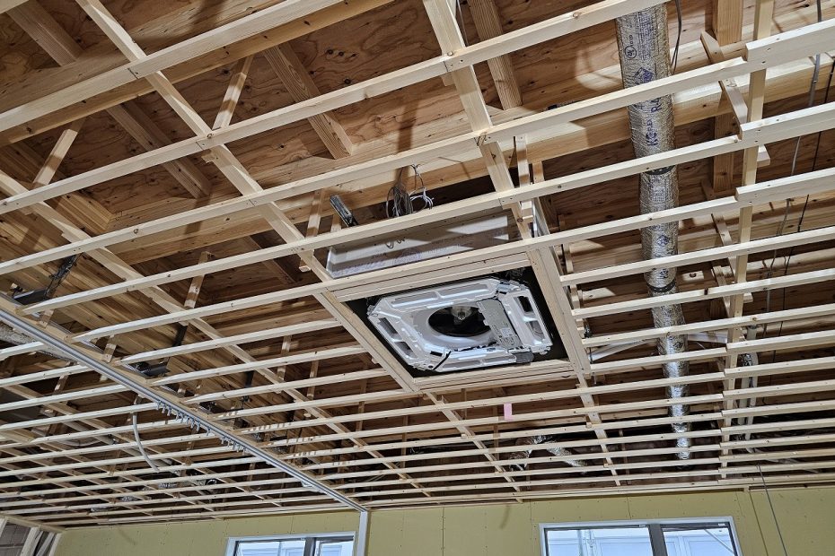 ホーム » 内外共に引き続き進行中です内外共に引き続き進行中ですby マツダ建築工房2025.10.132025.10.13 外部においてはサイディング張りが、内部では天井下地および設備の配管が順調に進行しております(山)